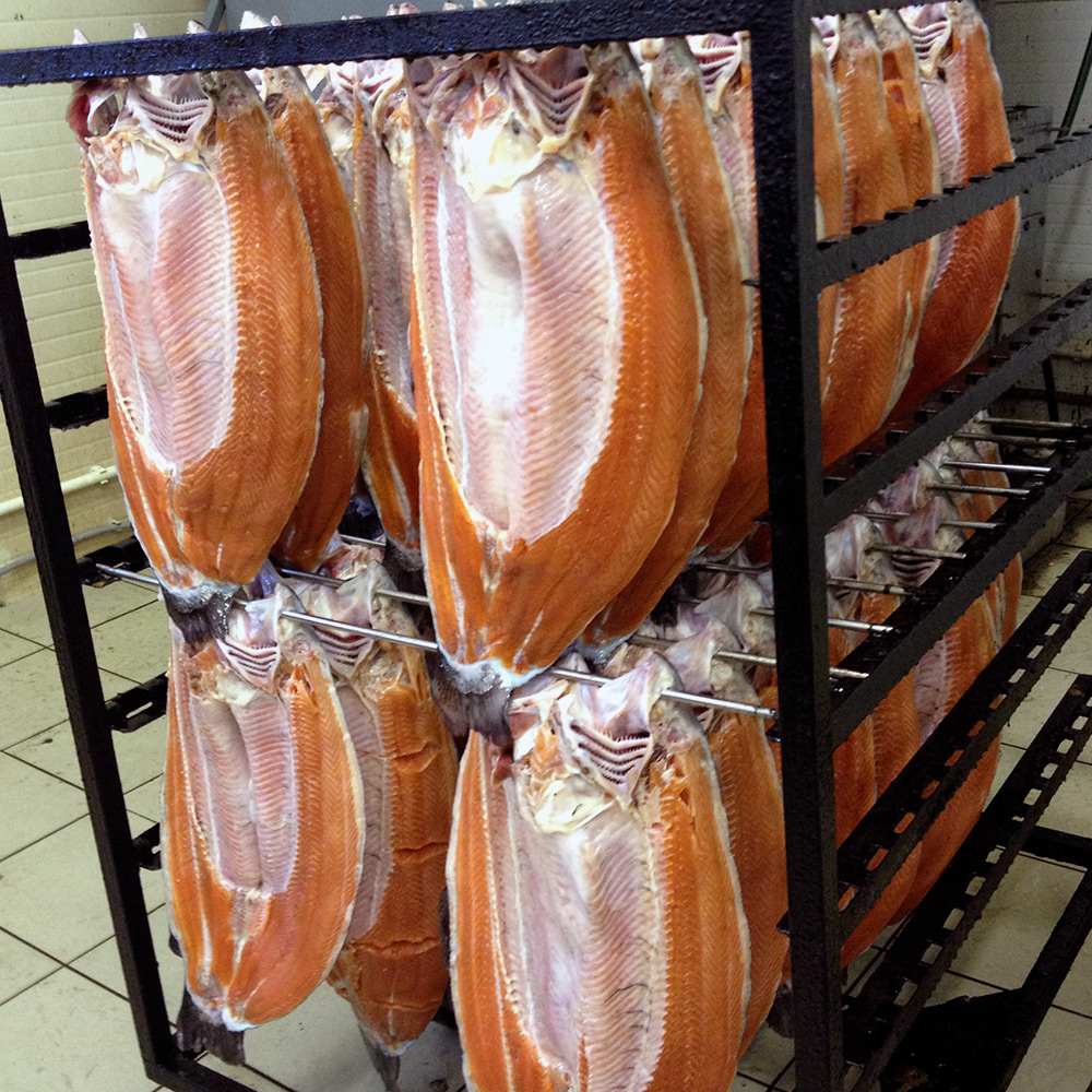 На сертифицированном предприятии с соблюдением всех ГОСТ и ТУ производится выпуск рыбы горячего и холодного копчения, пробойной форелевой икры слабой соли и предпродажная подготовка охлажденной рыбы.